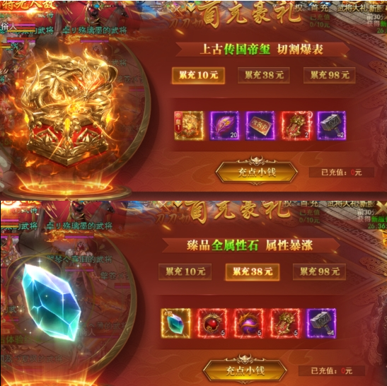 一、新服开服首充,豪华大礼,首充即送