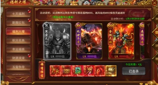 活动期间完成条件即可挑战福利BOSS,越高级BOSS掉落奖励越好