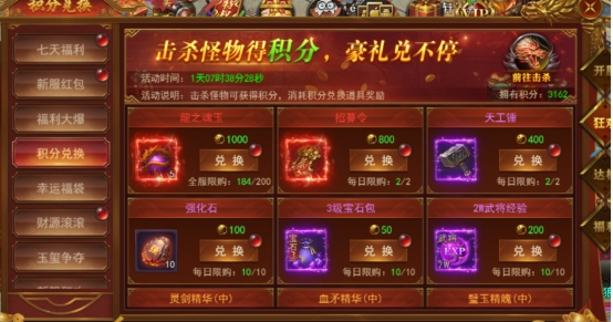 击杀怪物可以获得积分,消耗积分兑换道具奖励