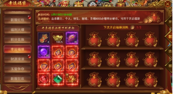 击杀BOSS获得幸运硬币,可开启福袋