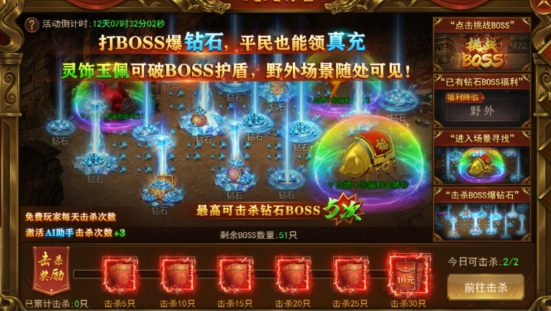 击杀指定BOSS即可领取真实充值红包