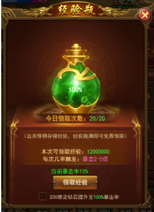 六、经验瓶炼制(新服首日开启)