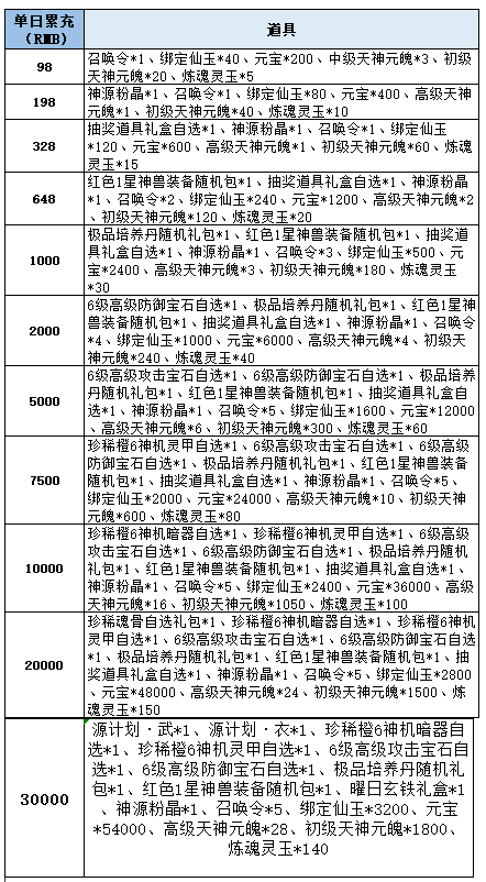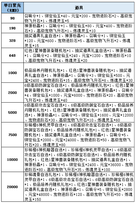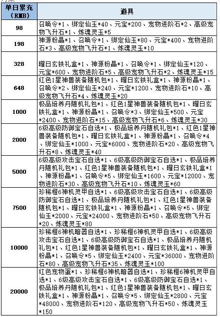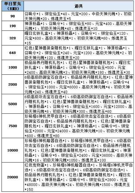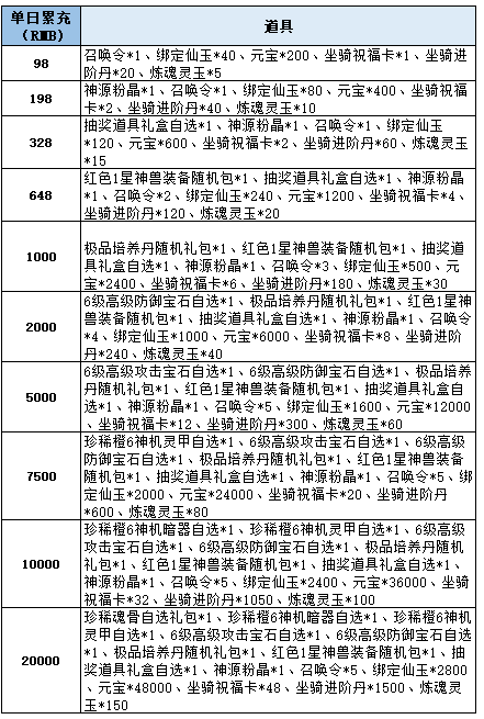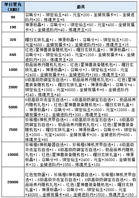 1、角色单日累计充值对应金额即可领取,每个档次每天只可领取一次;