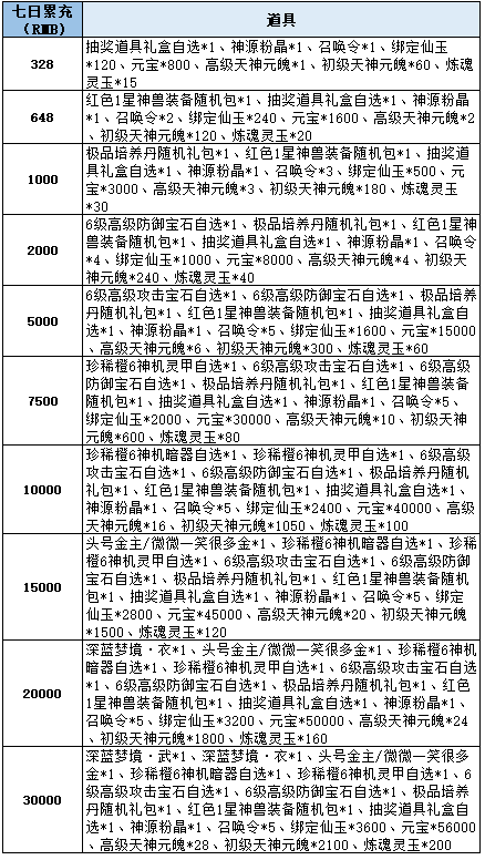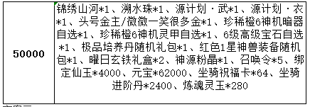 3、高档位可以领取低档位的道具,即累充到10000的,可以放弃领取10000档位,领取5000档位的道具;