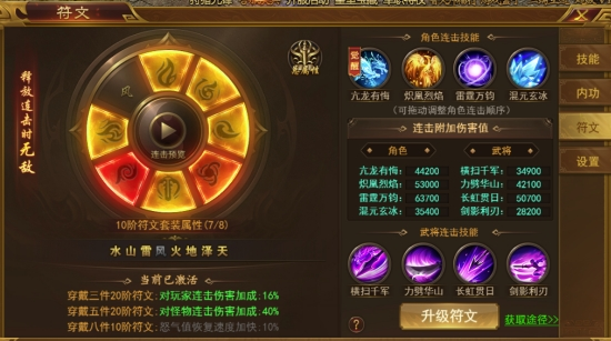 1、镶嵌符文可提升角色、武将的基础属性和连击技能附加伤害值