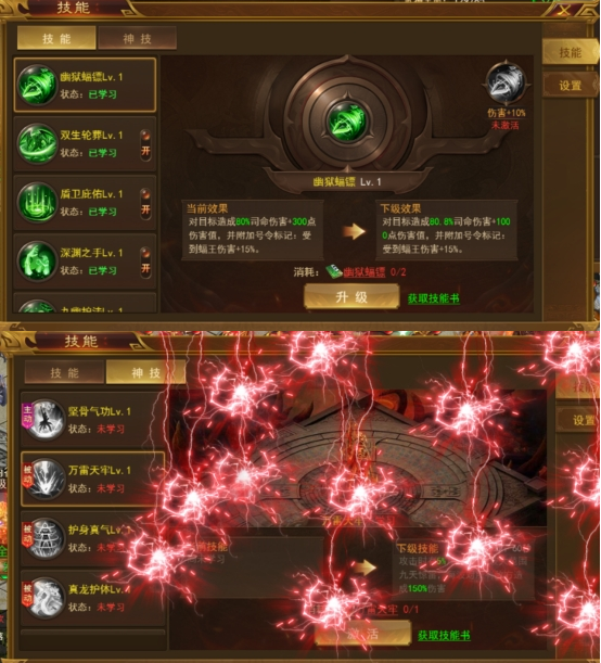 2、技能书通过领主BOSS,书页随机合成技能。书页可通过BOSS掉落、活动购买获取