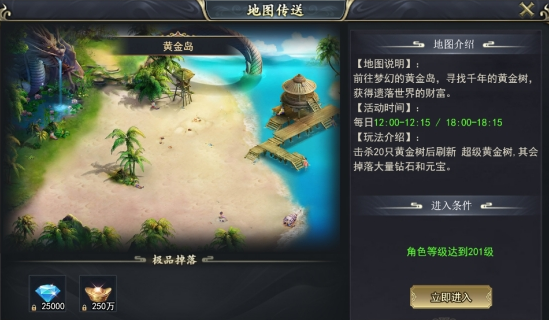 玩法介绍:击杀20只黄金树后刷新 超级黄金树,其会掉落大量钻石和元宝。
