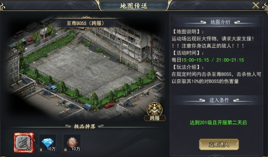 玩法介绍:在规定时间内击杀至尊BOSS,击杀他人可以获取其10%的对BOSS的伤害量