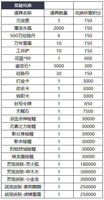 *积分可以累积最多七天,比如玩家连续10天获得积分100、100、100、100、100、100、100、100、100、100,可兑换积分就是700(而不是1000,只统计七天内)