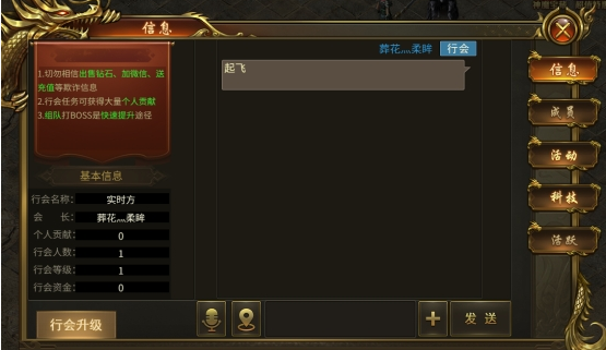 可以在行会内发送内部消息,仅行会成员可以看到