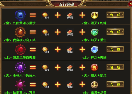 6. 五行魔像:消耗四圣兽神石提升等级、此处是进入下一大陆必备条件,需全身12级!