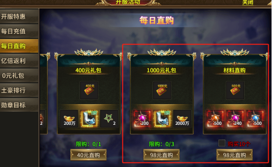 1. 开服特惠:开服前三天上的都一样,开服前2天建议都买。