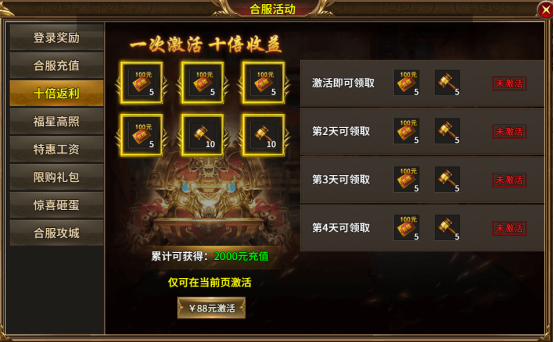 1. 十倍返利(可获得2000充值卡和20个幸运锤子)