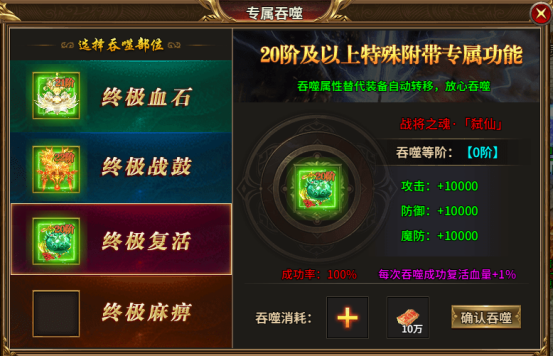 2. 专属吞噬:吞噬相同部位四件套,可提升特殊附带属性