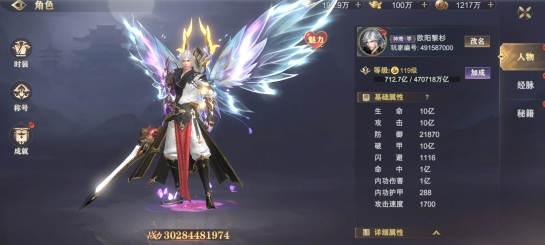 角色系统包括:角色基本信息(属性等)、时装、称号、成就、经脉、秘籍等功能