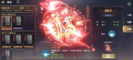秘籍:通过游戏内收集秘籍,完成秘籍指定任务可提升秘籍增加的属性。还能收集秘籍套装,获得大量战斗力提升。